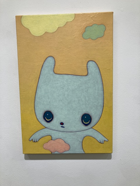 画面の質感がいいです、と話すと、キャンバスに和紙を貼って、アクリル絵の具で描いてゐる、と言っていた。
