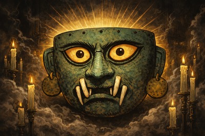 yomo2026年1月21日YOMO-ART Tweet 2026/1/21 アイ・アパエックの顔を表した埋葬用仮面モチェ文化(西暦100年~800年)北部沿岸地域ラルコ博物館 リマ(ペルー)2025年森アーツギャラリー「マチュピチュ展」で撮影 YOMO, 2026