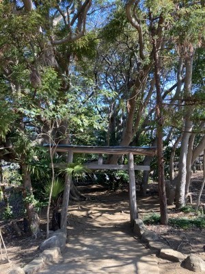 鳥居の奥に鷺沼太郎源太の祠がある。この鳥居と祠あたりがB号墳跡だ。