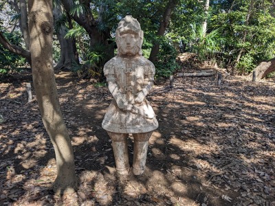 古墳跡には武人埴輪が設置されていた。しかし、この古墳からは武人埴輪は出土していない。円筒式埴輪が出土した。事実とは違うこのような展示は見る人を誤解させる。円筒式埴輪は見た目が地味で、キャッチーな武人埴輪にしたものと想像する。遺跡はエンターテイメントではないのだから、出土した埴輪を展示するべきだろう。
