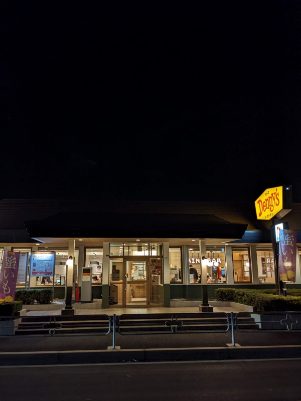 yomo2024年11月18日まち, 料理・食材・レストラン Tweet 2024年11月 下の記事の写真と上の写真を比較してほしい エントランス上のロゴを撤去した 楽しさ→落ち着き、高級感へとブランディングを変えた Denny’s 2010